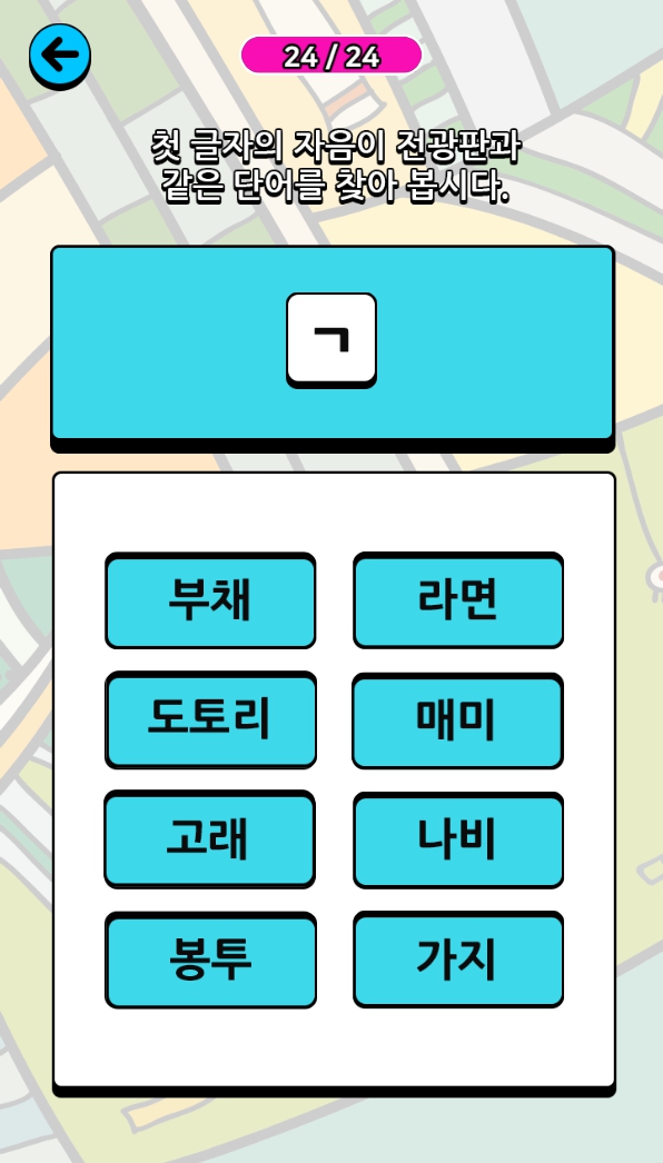 기초 국어 튼튼 1 과정에서는 자음자의 모양을 알고 읽어볼 수 있는 파악할 수 있는 문항부터 자음과 같은 단어를 찾아볼 수 있는 문항 등 문항의 종류도 다양합니다. 처음부터 게임을 하게 하기보다는 보상형식으로 하루의 할 일들을 했을 때 몇 문제씩 풀어보도록 해도 좋을 것 같습니다.